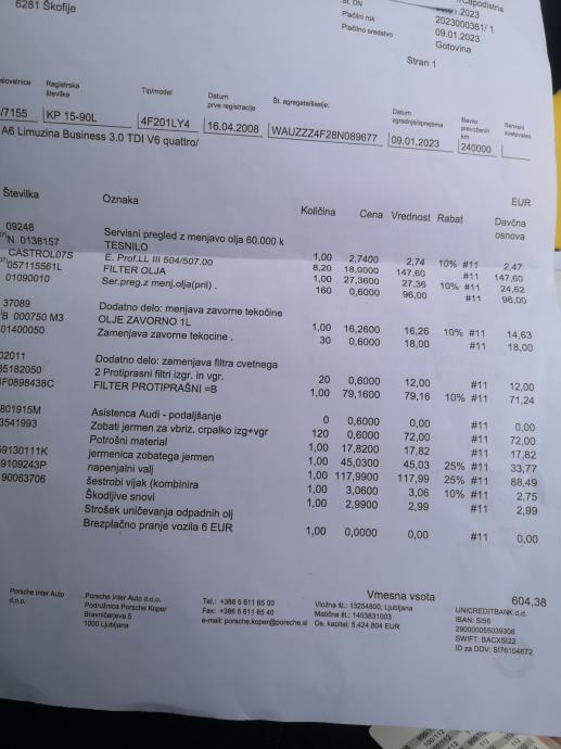 Redno servisiran pri Porsche Koper, kjer je možno pregledati na podlagi šasije vso zgodovino servisov (zadnji servis je tudi objavljen na sliki). Na zahtevo resnega kupca je možen ogled vseh servisnih računov. Na avtu so montirane letne pnevmatike GOODYEAR 225/50 WR17 EFFICIENT GRIPP2 XL letnik 2021.