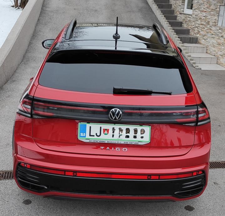 VW Taigo, 1.0 TSI DSG, R-line izvedba z vso možno dodatno opremo za perfektno vidljivost, varno vožnjo in udobje, kovinsko rdeče barve s črno streho, 7-stopenjski DSG menjalnik, garažiran, servisiran pri pooblaščenem serviserju (Vrtač), negovan in vožen z občutkom, kupna cena 29.380,09 EUR, kot nov.