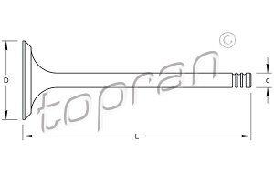 Izpušni ventil Volkswagen Polo. Letnik: 81-94. Lastnosti: Dolzina 99 mm, steblo ventila -? 8 mm, Kroznik ventila 28,8 mm, Stevilo zlebov 3.