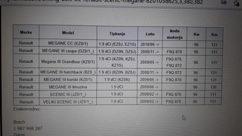 PRODAM OMENJENO GAR.JERMENA---JERMEN ZOBAT+NATEZALEC ORIGINAL RENAULT 8201038625 MEG 3,SCENIC 3 1,9 dci ,itd
