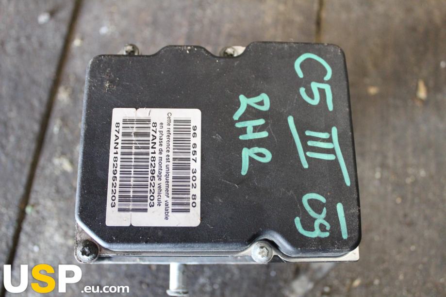 ABS črpalka je ključni del sistema za protokoliranje zračenja, ki zagotavlja varnost vozila. Ta del je namenjen za Citroen C5 in C5 Aircross. ABS črpalka deluje v kombinaciji z ostalimi komponentami sistema za protokoliranje zračenja, da prepreči blokiranje koles pri zaviranju in tako poveča varnost vozila. Deluje pod vodstvom elektronskega sistema, ki spremlja hitrost koles in prilagaja tlak v zavornih ceveh.Znamka: Citroen