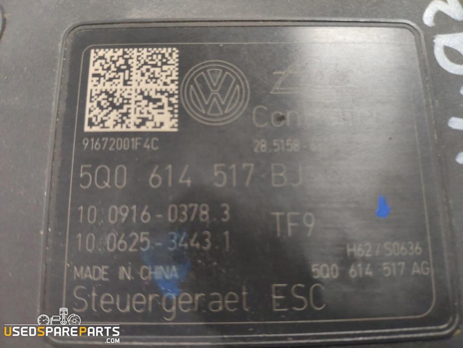 ABS modul (Anti-lock Braking System) je elektronski sistem, ki preprečuje blokiranje koles pri zaviranju. Deluje tako, da hitro pulzno aktivira in deaktivira zavore, kar omogoča boljši nadzor nad vozilom pri zaviranju. Ta del je primeren za vozila Volkswagen Golf VII Sportsvan iz leta 2017 z 1.4 16V TSI motorjem. Delovno številko ima 5Q0614517BJ.Znamka: Volkswagen