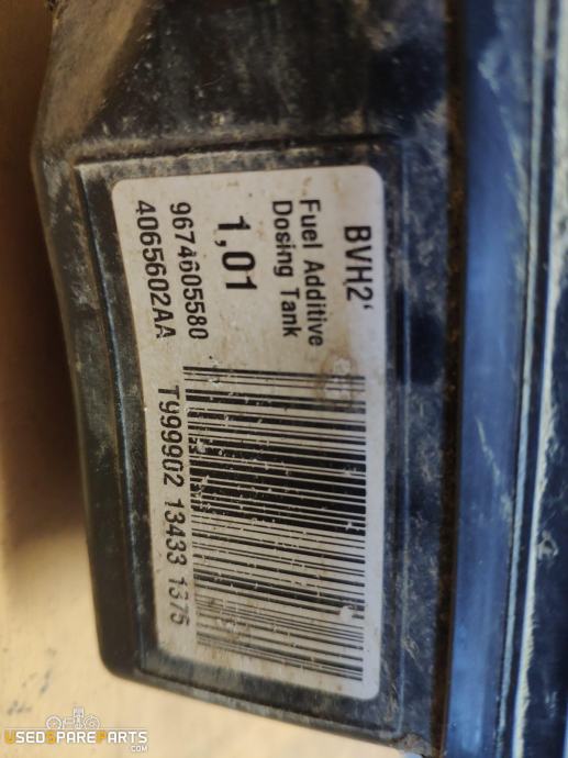 Rezervoar za AdBlue je del sistema za čiščenje izpušnih plinov v vozilih z dizelskim motorjem. Namenjen je shranjevanju AdBlue tekočine, ki se uporablja za zmanjšanje emisij dušikovih oksidov. Rezervoar je običajno nameščen v zadnjem delu vozila in ima svojo pokrovčko za polnjenje. V primeru, da se rezervoar izprazni, vozilo lahko ne bo moglo delovati pravilno, zato je pomembno redno preverjati raven AdBlue tekočine in jo po potrebi dopolnjevati. Delovni številka tega dela je 9674605580.