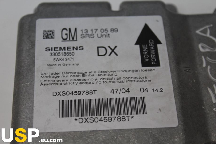 Kontrolna enota za zračne blazine je ključni del varnostnega sistema v vozilu. Nadzoruje aktivacijo zračnih blazin v primeru trka in zagotavlja pravilno delovanje sistema. Namenjena je vozilom Opel Vectra C in Signum. Deluje v kombinaciji z drugimi senzorji in komponentami za zagotavljanje optimalne varnosti.Znamka: Opel