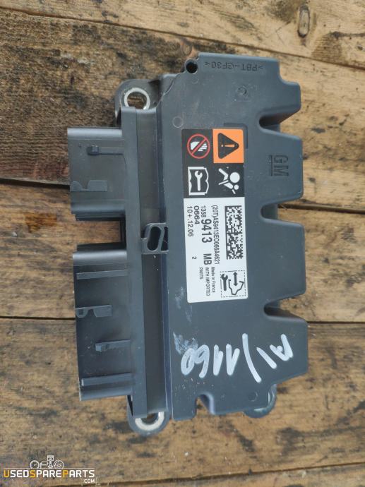 Modul za zračno blazino (Airbag ECU) je elektronska kontrolna enota, ki nadzira delovanje zračne blazine v vozilu. Ta modul je odgovoren za aktivacijo zračne blazine v primeru nesreče in zagotavlja varnost potnikov. Deluje v skladu z drugimi varnostnimi sistemi v vozilu, kot so senzorji za trk in sistemi za varnost potnikov. Modul za zračno blazino je ključen del varnostne opreme vozila in mora biti pravilno nameščen in vzdrževan, da zagotavlja optimalno varnost.Znamka: Opel