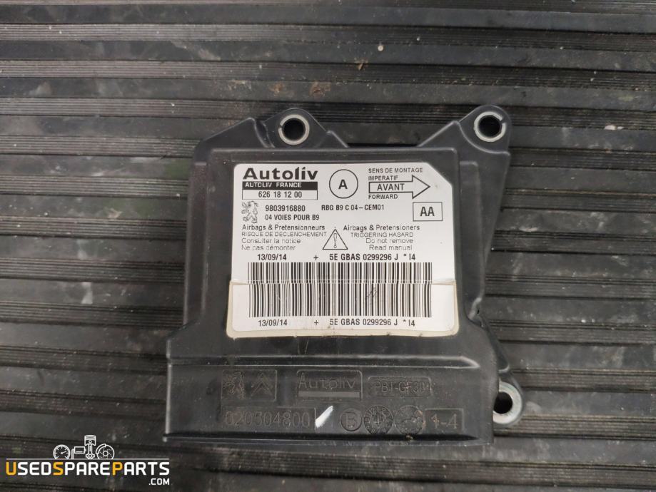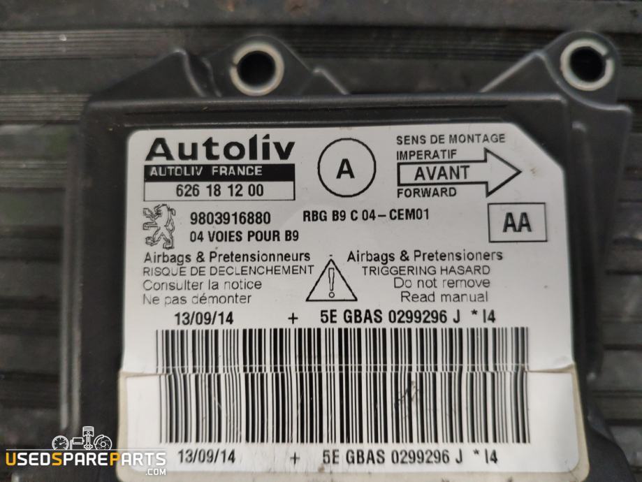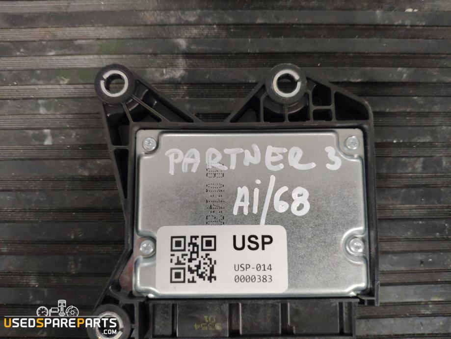 Modul za zračne blazine je elektronski kontrolni sistem, ki upravlja delovanje zračnih blazin v vozilu. Ta modul je namenjen za vozila Peugeot Partner in je odgovoren za aktivacijo zračnih blazin v primeru trka. Vsebuje programska oprema, ki omogoča zaznavanje trkov in aktivacijo zračnih blazin. Modul je pomemben za varnost potnikov in je del varnostnega sistema vozila.Znamka: Peugeot