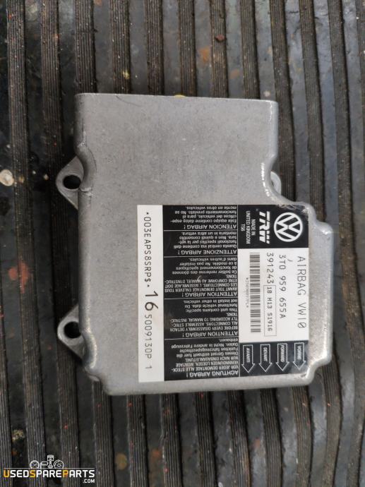 Modul za zračne blazine je elektronski sistem, ki nadzoruje delovanje zračnih blazin v vozilu. V primeru nesreče ali močnega udarca aktivira zračne blazine, ki pomagajo zmanjšati poškodbe potnikov. Modul za zračne blazine je ključni del varnostnega sistema vozila in mora biti pravilno nameščen in programiran, da deluje pravilno. Delovni številka 3T0959655A se nanaša na originalni modul za zračne blazine za Skodo Superb II.Znamka: Skoda