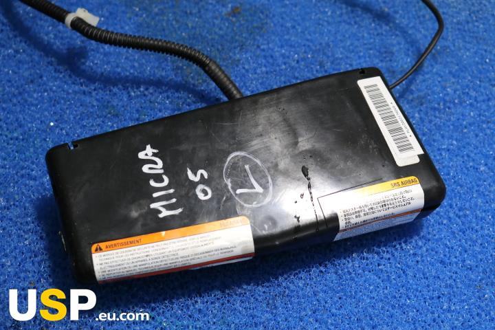 Zračni blazin za sedež je varnostni element, ki se aktivira pri trku in pomaga preprečiti poškodbe potnikov. Namenjen je za levi sedež v vozilu Nissan Micra. Deluje tako, da se razširi in absorbira udarec, zmanjša tveganje poškodb glave in vratu. Je pomemben del varnostne opreme vozila.Znamka: Nissan