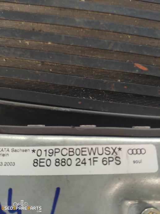 Zračna blazina sedeža je kritična varnostna komponenta, ki se uporablja v vozilih za zaščito potnikov v primeru nesreče. Delovni številka 8E0880241F6PS označuje točno komponento, ki je namenjena za levi sedež v vozilu Audi A4 iz leta 2004. Ta del je pomemben za zagotavljanje varnosti potnikov in mora biti pravilno nameščen in vzdrževan, da zagotovi optimalno delovanje v primeru aktivacije.Znamka: Audi