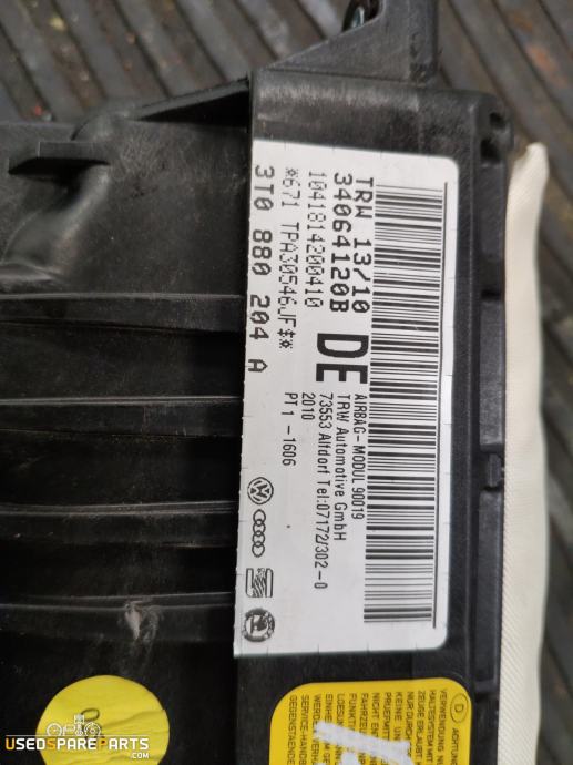Zračna blazina za sovoznika je kritična varnostna komponenta, ki se aktivira v primeru trka, da zaščiti potnike v vozilu. Delovni številka 3T0880204A se uporablja za modele Skoda Superb in VW Passat. Ta komponenta je pomembna za zagotavljanje varnosti v vozilu in mora biti nameščena pravilno, da deluje učinkovito.Znamka: Skoda