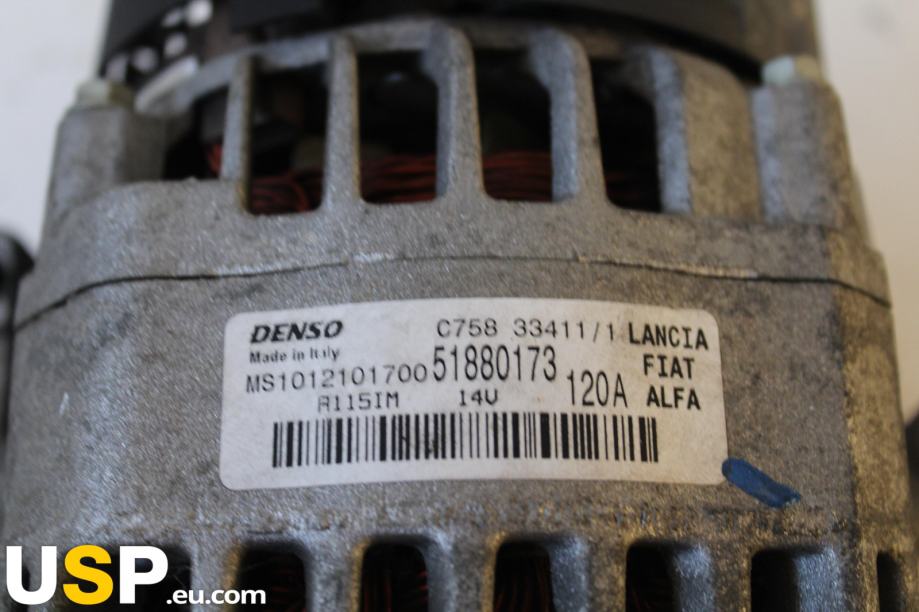 Alternator je ključni del električnega sistema vozila, ki proizvaja električno energijo med vožnjo in polni baterijo. Deluje tako, da pretvori mehansko energijo v električno, ki se uporablja za napajanje različnih elektronskih sistemov, kot so svetilke, radio in klimatska naprava. Alternator je običajno nameščen na sprednji strani motorja in se vrti z vprego.Znamka: Lancia