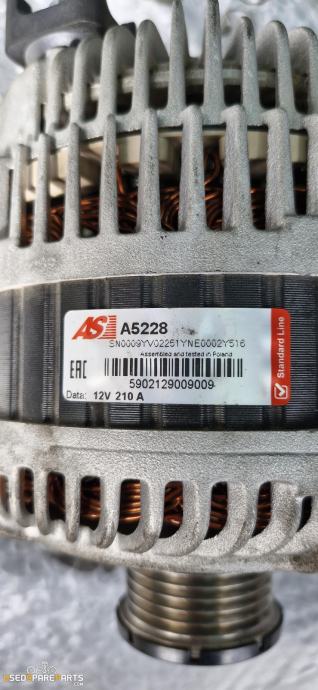 RABLJEN SAMO 2 MESECAAlternator je električni generator, ki se uporablja v vozilih za proizvodnjo električne energije. Deluje tako, da pretvarja mehansko energijo v električno energijo. V primeru tega dela, z oznako 8200960536, se uporablja v vozilih Renault Megane III in Renault Latitude (L70_) 3.0 dCi 240 (L70G). Ima tehnične karakteristike, kot so npr. 100 A toka, 14 V napetosti, z zobnikom in 7 žlebov. Del je nov brez embalaže in ima referenčno številko A004TJ0282ZE.