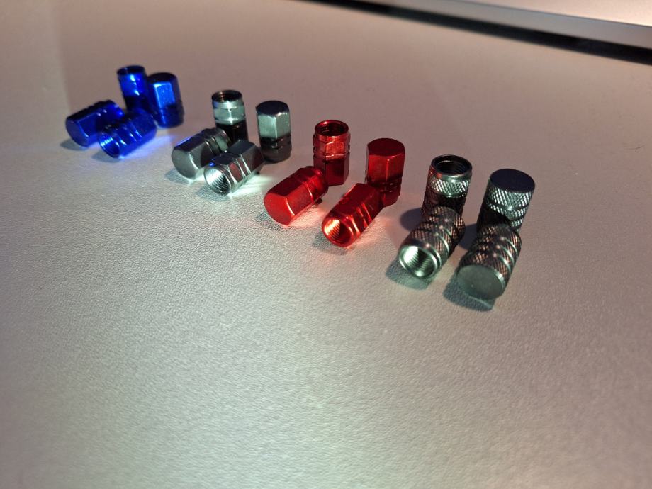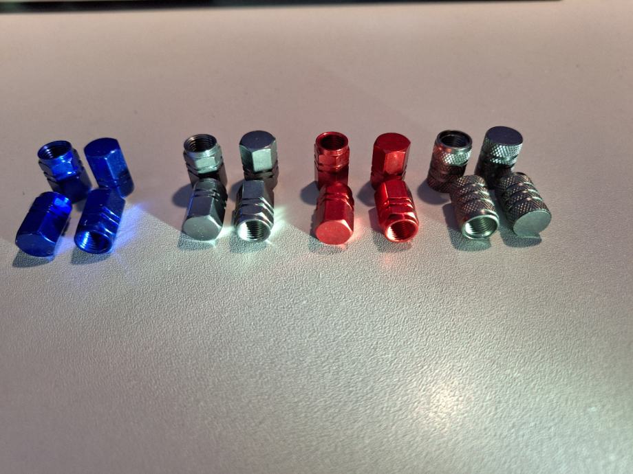 Prodam aluminijaste kapice za ventile. Vse so nove. Cena je za set 4 kapic. Uporaba je mogoča na avtomobilu, kolesih in motorju.