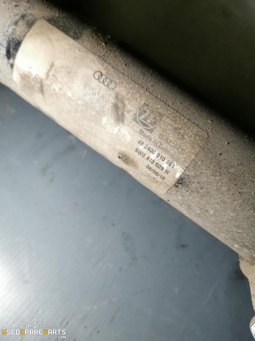 Amortizer je del prednjega osnega sistema vozila, ki služi za blaženje udarcev in vibracij pri vožnji. V primeru vozila Audi A4 Avant 3.0 TDI (B9) iz leta 2016, je amortizer del prednjega osnega sistema, ki pomaga pri stabilnosti in udobju vožnje. Deluje tako, da absorbira udarce in vibracije, ki nastanejo pri vožnji po neravnih cestah, kar prispeva k boljši stabilnosti in udobju vozila.Znamka: Audi