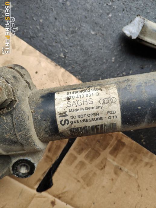 Prednji amortizer je ključni del prednje osi vozila, ki pomaga pri absorpciji udarcev in zagotavlja stabilnost vozila pri vožnji. Deluje tako, da sprejema in razkraja energijo, ki jo prejme od ceste, kar pomaga pri zmanjšanju vibracij in udobnosti vožnje. Prednji amortizer z oznako 8T0413031Q je namenjen za uporabo v vozilih Audi A5 3.0 TDI quattro (8T3) iz leta 2008 in kasneje.Znamka: Audi
