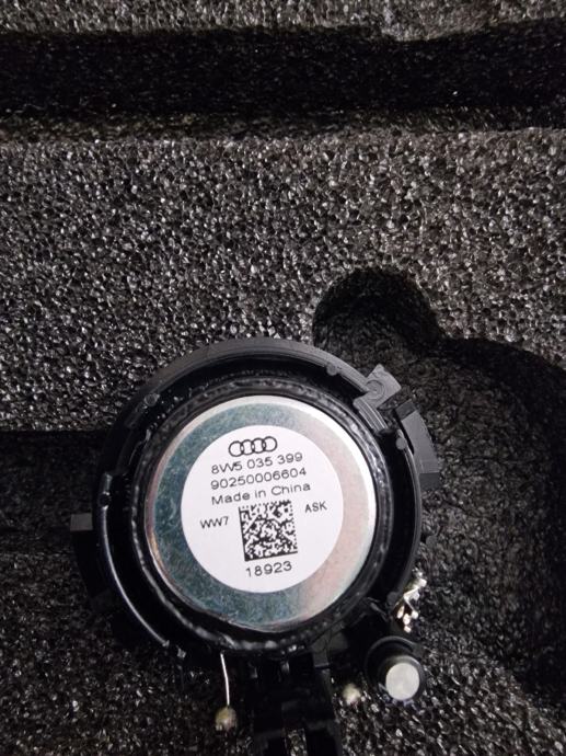 Prodam par zvočnikov demontiranih iz AUDI A5 letnik 2024 ETKA 8W5035399 (zadnja vrata) - ustrezajo tudi drugim modelom vozil AUDI (A4, A5, A6, A7, A8). Prodajajo se zaradi nadgradnje zvočnikov.