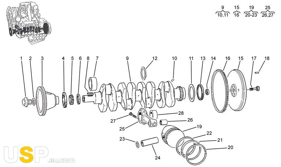 Številka 28 na sliki.Ležajna bušnica je del sprednjega kolesa, ki omogoča gibljivost in zmanjšuje vibracije med delovanjem vozila. Je ključni del za zagotavljanje udobnosti in stabilnosti vozila med vožnjo. Lahko se uporablja v različnih modelih avtomobilov, kot so Škoda Octavia in Volkswagen Golf.