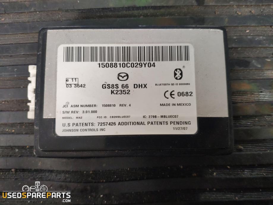 Modul za brezžično povezavo (Bluetooth) je elektronska komponenta, ki omogoča brezžično povezavo med mobilnim telefonom in avtomobilskim stereo sistemom. Ta modul je posebej zasnovan za uporabo v vozilih Mazda 6 iz leta 2009 in omogoča uporabnikom, da brezžično upravljajo svoje mobilne telefone preko avtomobilskih kontrolnih elementov. Modul je običajno nameščen v notranjosti vozila, lahko pod potnikovo stranjo ali v bližini volanskega stebra, in je povezan z avtomobilskim stereo sistemom. Omogoča funkcije, kot so brezžično prenašanje zvoka, sprejemanje klicev in upravljanje glasbe preko avtomobilskih kontrolnih elementov.Znamka: Mazda
