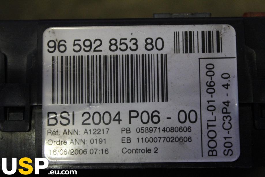 Električni kontrolni blok (BSI) je osrednji del električnega sistema vozila. Nadzoruje in koordinira delovanje različnih elektronskih sistemov, kot so osvetlitev, zvočni sistem in varnostne funkcije. Gre za ključni komponent, ki omogoča komunikacijo med različnimi elektronskimi enotami v vozilu.Znamka: Peugeot