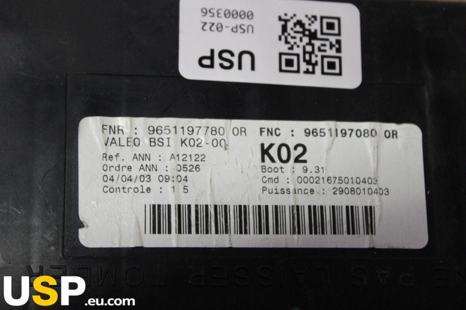 Kontrolna enota BSI je elektronska komponenta, ki nadzira in upravlja različne funkcije v vozilu, kot so elektrika, varnost in komunikacija med različnimi sistemi. Ta del je pomemben za pravilno delovanje vozila in je specifičen za model Peugeot 307.Znamka: Peugeot