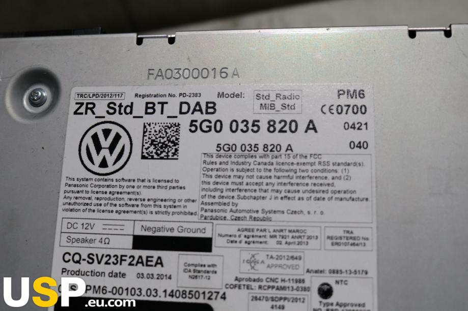 Radijska enota z menjalnikom CD za Volkswagen Golf 7. Ta del je namenjen za uporabo v avtomobilskih radijskih sistemih, ki podpirajo menjalnik CD. Del ima šifro 5G0035820A in je primeren za leta izdelave med 2013 in 2016. Je del elektronske opreme avtomobila in se uporablja za reproduciranje glasbe iz CD plošč.Znamka: Volkswagen