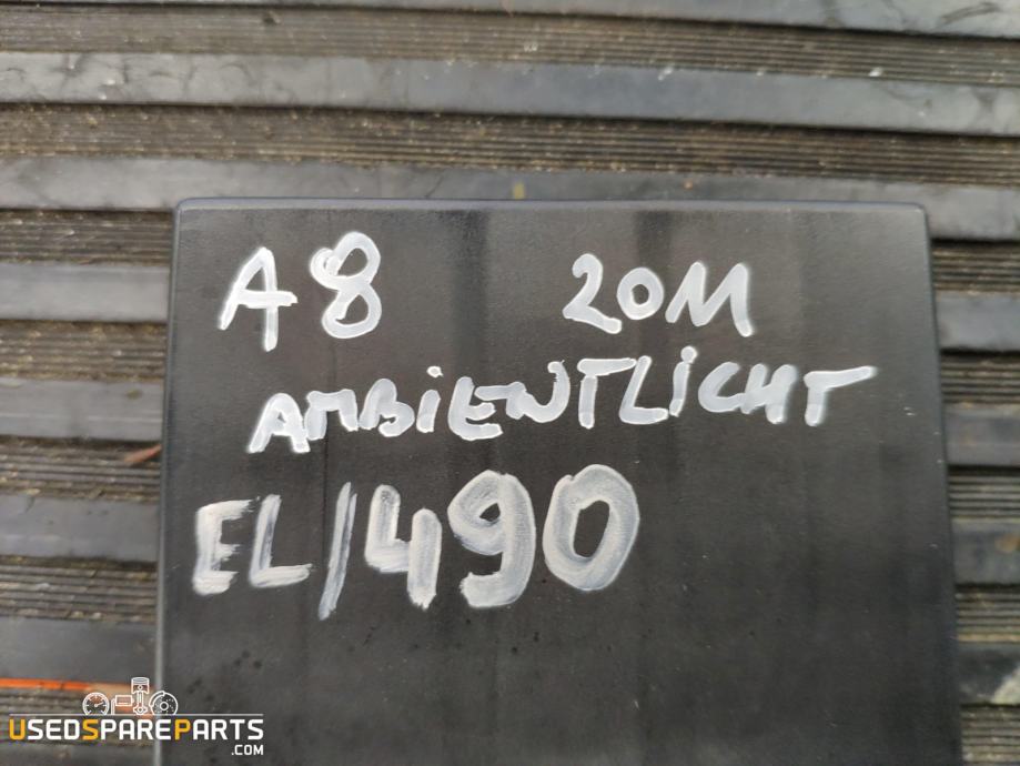 Modul za ambientno osvetlitev je osrednji kontrolni modul za sistem udobja v vozilu Audi A8. Nadzoruje osvetlitev notranjosti vozila in zagotavlja ambientno osvetlitev. Deluje v povezavi z drugimi moduli, kot so moduli za vrata in strop, ter zagotavlja sinhronizacijo osvetlitve. Modul je pomemben za ustvarjanje udobne in prijetne atmosfere v vozilu.Znamka: Audi