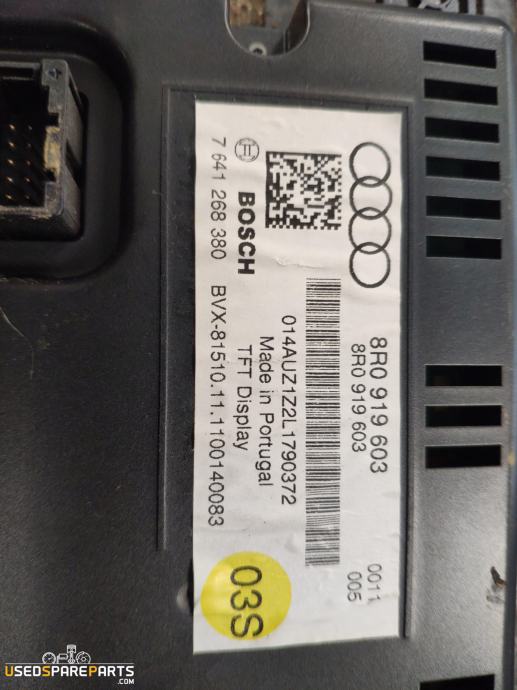 Zaslon za informacije (DISPLAY/EKRAN) je del avtomobilske elektronike, ki prikazuje različne informacije, kot so navigacija, radijske postaje, klimatski sistem in drugo. Ta del je specifičen za model Audi A4 B8 iz leta 2011 in je del sistema Concert ali Symphony. Če zaslon ne deluje pravilno, lahko je problem v samem zaslonu ali v glavni enoti (head unit), ki ga kontrolira. Zaslon je povezan z glavno enoto preko 10-žičnega konektorja in zahteva 12V napetost na pinu 1 in zemljo na pinu 2.