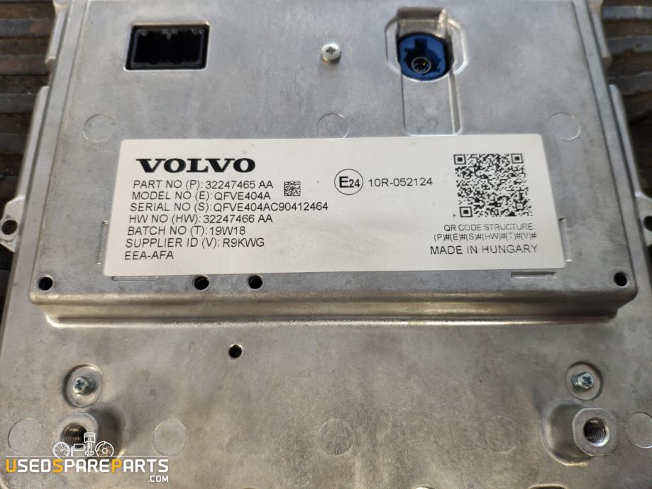 Zaslon za prikazovalnik v vozilu Volvo XC40, ki omogoča prikaz informacij o navigaciji in ostalih funkcijah. Del ima številko 32247465AA in je namenjen za uporabo v vozilih z različnimi motorji in menjalnikom. Zaslon je del večpredstavnega kontrolnega enota za multimedijske funkcije.Znamka: Volvo