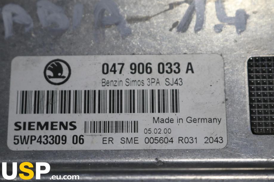 Motorni računalnik za Škodo Fabio 1.4 MPI, katalogna številka 047906033A. Uporablja se za nadzor delovanja motorja, vključno z vbrizgavanjem goriva in drugimi funkcijami. Je ključni del elektronskega sistema vozila.Znamka: Skoda
