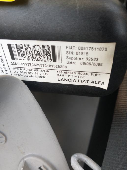 fiat bravo 2007- armatura airbag kit komplet set vsi airbagi, varnostni pasovi, senzor vezne stene, airbag računalnik