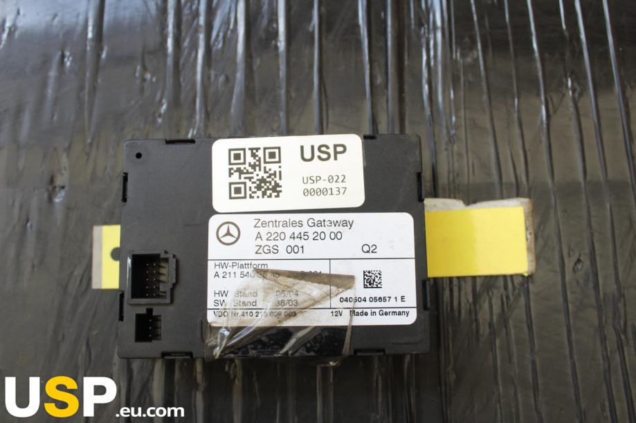 Vmesnikov modul je elektronski komponent, ki omogoča komunikacijo med različnimi elektronskimi sistemskimi komponentami v vozilu. V Mercedes-Benz W220 modelih deluje kot centralni vmesnik za povezavo različnih elektronskih sistemov, kot so infotainment, varnostni sistemi in drugi. Njegova funkcija je zbiranje in distribucija podatkov med različnimi elektronskimi enotami, kar omogoča gladko delovanje vozila.Znamka: Mercedes-Benz