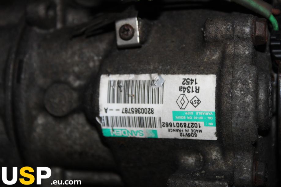 Kompresor za klimatsko napravo je ključni del sistema za hlajenje zraka v vozilu. Omogoča kompresijo hladilnega sredstva, ki se nato uporablja za hlajenje zraka v kabini. Deluje v kombinaciji z ostalimi komponentami sistema za klimatsko napravo, kot so kondenzator, evaporator in ventilator. Kompresor je pogosto nameščen na motorju in ga pogoni grediščna gred motorja. Pri Renaultovem modelu Clio 1.4 16V iz leta 2007 je kompresor ključnega pomena za učinkovito hlajenje.Znamka: Renault
