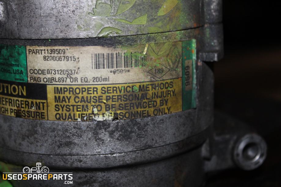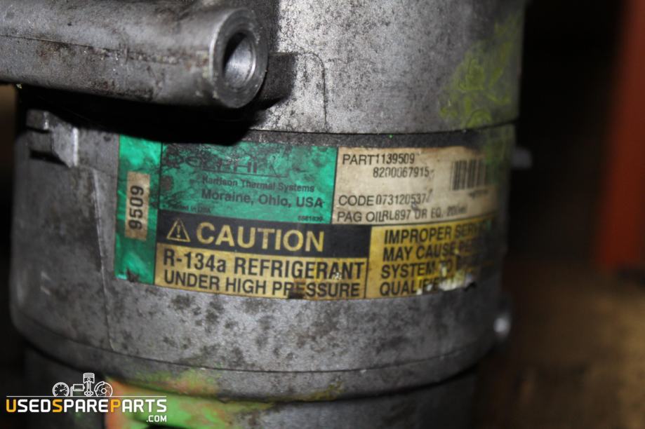 Kompresor za klimatsko napravo z delovnim številom 8200067915 je namenjen vozilom Renault Espace IV. Uporablja se za pogon klimatske naprave in je bistven za pravilno delovanje sistema hlajenja. Kompresor je običajno nameščen v sistemu klimatske naprave in je odgovoren za stiskanje hladilnega sredstva, kar omogoča hlajenje zraka v vozilu.Znamka: Renault
