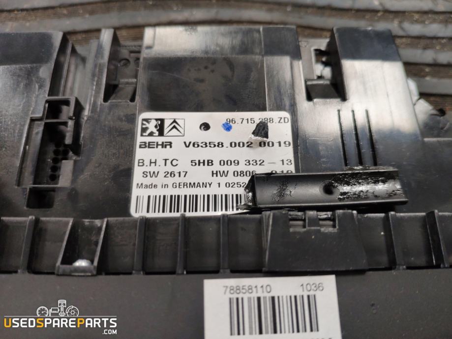 Klimatizacijski kontrolni panel za Citroen C5 MK3 (X7) iz leta 2010 je elektronski sistem, ki omogoča uporabniku nadzor nad klimatizacijo v vozilu. Ta del je bistven za pravilno delovanje sistema klimatizacije in zagotavlja udobno okolje v vozilu. Panel vključuje različne funkcije, kot so nastavitev temperature, hitrosti zraka in režima delovanja. Primeren je za vozila Citroen C5 MK3 (X7) iz leta 2010 in kasneje.Znamka: Citroen