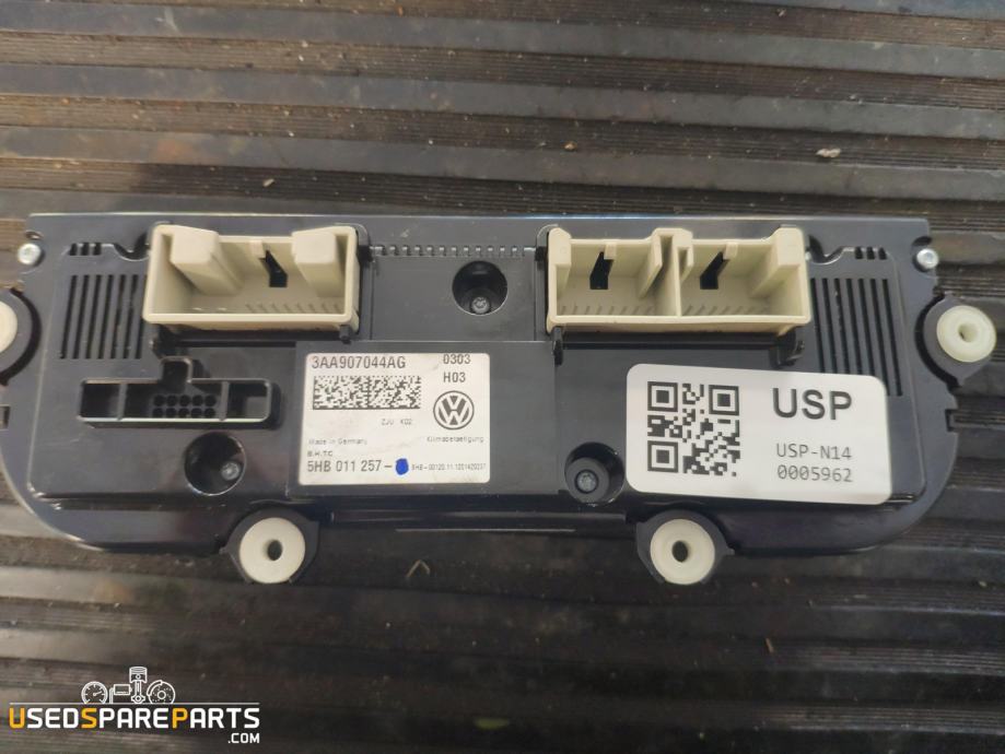 Klimatski nadzor za Volkswagen Touran (1T3) 1.4 TSI EcoFuel je elektronski sistem, ki omogoča nastavitev temperature, hitrosti ventilatorja in razdelitev zraka v vozilu. Sistem ima različne funkcije, kot so nastavitev temperature, hitrosti ventilatorja, razdelitev zraka, defrost funkcija in recirkulacija zraka. Deluje tako, da se pritiskom na gumb aktivira ali deaktivira funkcija, pri čemer svetleče LED diode označujejo aktivnost funkcije. Sistem lahko deluje tudi v avtomatskem režimu, kjer se temperatura, hitrost ventilatorja in razdelitev zraka nastavljajo samodejno.Znamka: Volkswagen