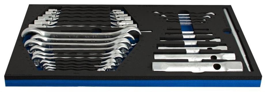 Opis:- V celoti poboljšan- Površinska zaščita: kromiran po EN12540- Material: krom molibdenVSEBINA:- Ključ cevni, dvostranski - 215/2: 6 x 7, 8 x 10, 13 x 17, 19 x 22, 24 x 27, 30 x 32- Trn za 215/2 - 215.1/2: 6 - 17, 18 - 32- Ključ obročni ukrivljen, s TX profilom - 182/2BTX: E6 x E8, E10 x E12, E14 x E18, E20 x E24- Ključ obročni odprti, ukrivljen - 183/2: 8 x 10, 10 x 11, 11 x 13, 12 x 14, 16 x 18, 17 x 19, 19 x 22, 22 x 24, 24 x 27, 30 x 32- Ključ nasadni,...