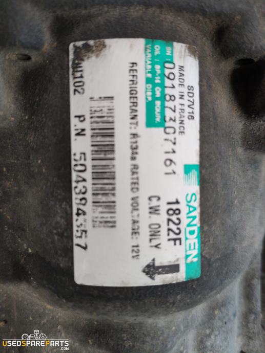 Kompresor klime je ključni del sistema klimatizacije v vozilu. Njegova glavna naloga je stiskati hladilno sredstvo, ki se uporablja za hlajenje zraka v vozilu. Deluje v kombinaciji s kondenzatorjem, evaporatorjem in širitvenim ventilom, da zagotovi učinkovito hlajenje. Kompresor klime s številko 504384357 je primeren za vozila CITROËN JUMPER, FIAT DUCATO in PEUGEOT BOXER iz let 2006 do 2014, ter za novejše modele FIAT DUCATO od leta 2014 naprej.Znamka: Fiat