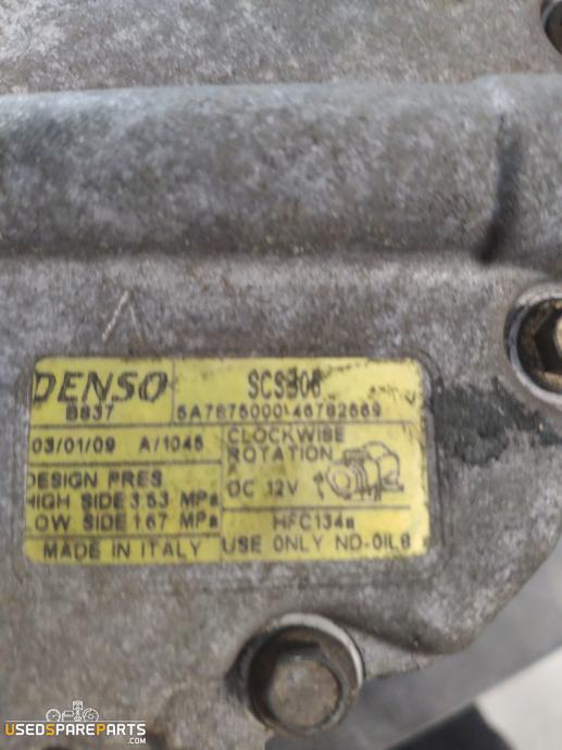 Kompresor klimatske naprave je ključni del sistema klimatizacije v vozilu. Njegova glavna naloga je stiskati hladilno sredstvo, ki se uporablja za hlajenje zraka v vozilu. Deluje tako, da stiska hladilno sredstvo v plinasto stanje, kar omogoča učinkovito hlajenje. V primeru vozila Fiat Punto 1.2i iz leta 2009, kompresor klimatske naprave z oznako 5A7875000 je bistven del sistema klimatizacije, ki zagotavlja udobno in hladno okolje v vozilu.Znamka: Fiat