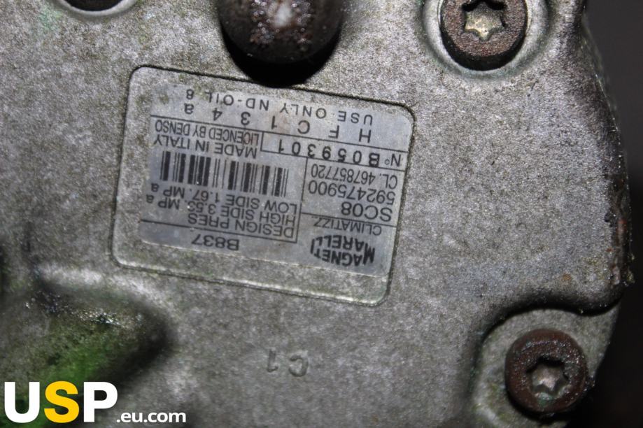 Kompresor za klimatsko napravo je ključni del sistema za hlajenje zraka v vozilu. Ta del je namenjen vozilom Fiat Punto, posebej modelom z motorjem 1.2 16V. Kompresor stiska plin, ki kroži po klimatskem sistemu, kar omogoča hlajenje zraka. Je zelo pomemben za pravilno delovanje klimatske naprave in zagotavlja udobno temperaturo v notranjščini vozila.Znamka: Fiat