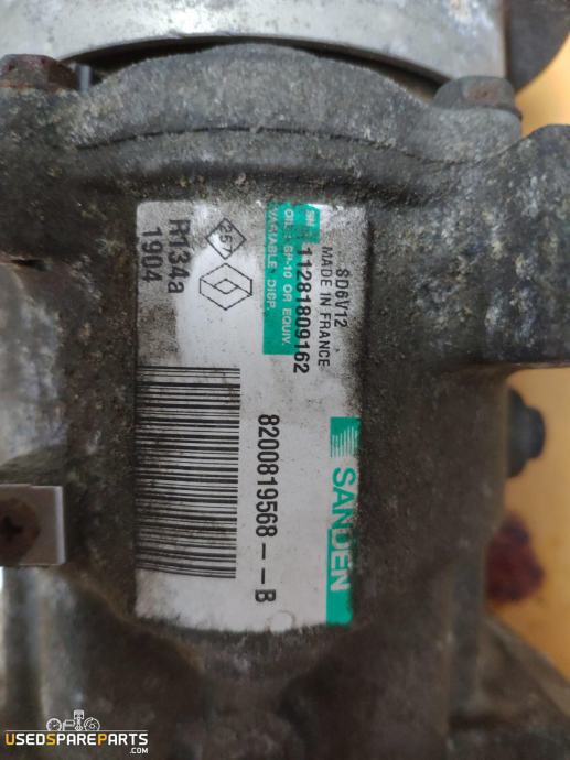 Kompresor klime je ključni del sistema klimatizacije v vozilu. Njegova naloga je stiskati hladilno sredstvo, ki se uporablja za hlajenje zraka v vozilu. Deluje v kombinaciji s kondenzatorjem, evaporatorjem in še drugimi deli sistema klimatizacije. Kompresor klime z oznako 8200819568 je primeren za vozila Renault Clio 3 in Twingo 2 z motorjem 1.2 16V. Je pomemben del za pravilno delovanje sistema klimatizacije in zagotavlja udobno temperaturo v vozilu.Znamka: Renault