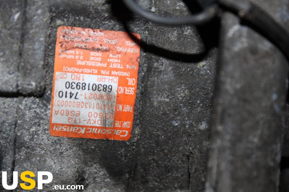 Kompresor za klimatizacijo je ključni del sistema za hlajenje zraka v vozilu. Omogoča kompresijo in pretvorbo hladilnega sredstva, ki hladi zrak preden ga izpusti v notranjost vozila. Deluje kot srce sistema klimatizacije in je bistven za zagotavljanje udobnega temperature v vozilu. Pogosto se uporablja v vozilih, kot je Nissan X-Trail.Znamka: Nissan