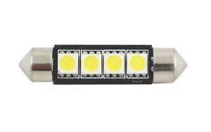 Kakovostne LED žarnice, s katerimi lahko zamenjate klasične sofitne žarnice C5W, dolžine 42 mm. V kompletu sta 2 LED žarnici, vsaka ima 4 LED diode, njihova bela svetloba bo vašemu avtomobilu dala moderen videz. V novejših vozilih s kontrolo pregorelih žarnic je priporočljiva uporaba skupaj z Mline upornikom za LED žarnice. V primerjavi s klasičnimi žarnicami imajo LED žarnice daljšo življenjsko dobo, se manj segrevajo, zato je tudi poraba energije manjša. Uporabljajo se za notranjo osvetlitev vozila, bočne smerokaze, osvetlitev registrske tablice, osvetlitev notranjega predalčnika in osvetlitev prtljažnika.