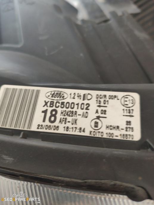 Prednja luč za vozilo Land Rover Discovery 3, ki je izdelana za vozila z zračno vzmetenjem in adaptivnimi bi-ksenonskimi lučmi. Delovno številko XBC500102 ima originalna prednja luč, ki je primerna za vozila z desnostranskim krmiljenjem. Prednja luč je kompletna sestavljena enota, ki vključuje vse potrebne komponente za pravilno delovanje. Za vozila z zračno vzmetenjem in adaptivnimi bi-ksenonskimi lučmi je potrebno uporabiti točno določeno prednjo luč, da se zagotovi pravilno delovanje sistema.Znamka: Land Rover