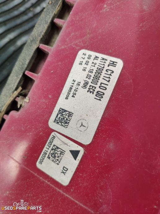 Zadnja desna luč za Mercedes-Benz CLA Kombi je rezervni del, ki se uporablja za osvetlitev zadnjega dela vozila. Deluje kot varnostna komponenta, ki pomaga pri vidljivosti vozila v nočnem času ali v slabih vremenskih pogojih. Ta luč je posebej zasnovana za model CLA Kombi in je kompatibilna s to serijo vozil. Njena namestitev je pomembna za zagotavljanje varnosti in pravilnosti vozila.Znamka: Mercedes-Benz