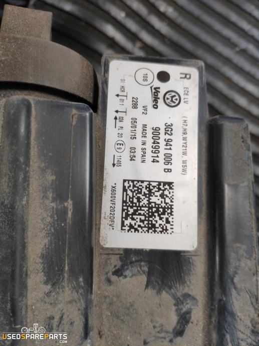 Žaromet za Volkswagen Passat B8 je del avtomobilskega sistema za osvetlitev. Deluje kot prednja desna luč in je primeren za modele Passat B8 od leta 2014 naprej. Žaromet ima električno nastavitev višine snopa, vendar brez motorčka za nastavitev višine snopa. Uporablja žarnice H7 za kratki snop in H9 za dolgi snop. Del je nov in ima enoletno garancijo. Homologacijska oznaka: E-oznaka.Znamka: Volkswagen
