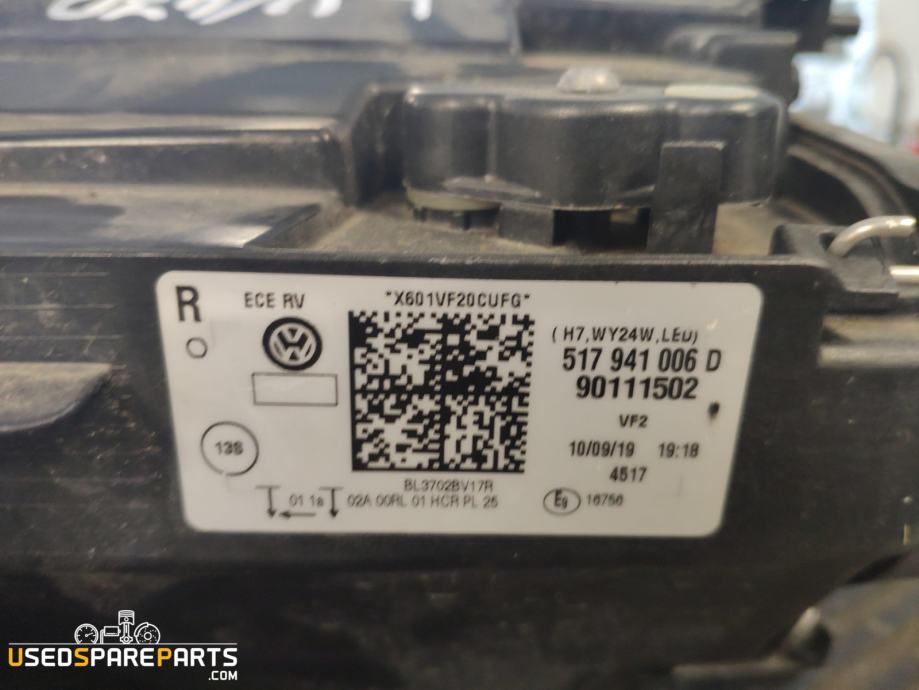 Prednja luč desno za Volkswagen Golf Sportsvan VII (AM1, AN1) 1.0 TSI. Delovni številka: 517941006D. Ta del je primeren za vozila iz let 2014-2020. Prednja luč je pomemben del vozila, ki zagotavlja varno in učinkovito osvetlitev ceste. Ta del je na voljo kot rabljen del in je primeren za vozila z 1.0 TSI motorjem.Znamka: Volkswagen