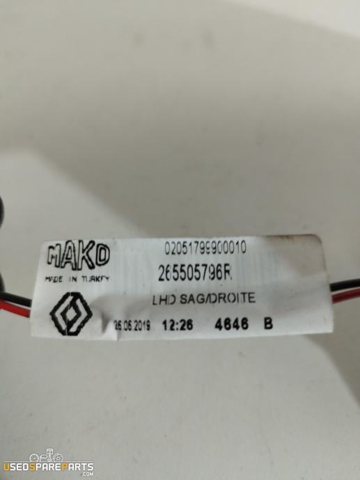 Zadnja luč, desna stran, notranji del, primeren za Renault Clio IV, modeli od 2012 do 2020. Del ima oznako 265505796R in je kompatibilen z različnimi modeli Clio IV, vključno z 0.9 Energy TCE 90 12V. Uporabljeni deli imajo 3 mesece garancije. Dimenzije niso navedene.