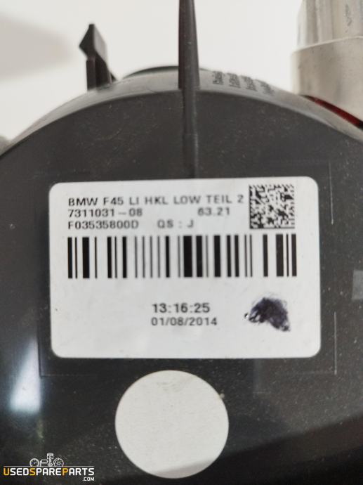 Zadnja luč levo je del avtomobilske opreme, ki služi kot varnostna komponenta za osvetlitev zadnjega dela vozila. Ta del je posebej zasnovan za modele BMW Serija 2 F45 Active Tourer iz leta 2014 in je pomemben za zagotavljanje varnosti in vidljivosti vozila, še posebej v slabih svetlobnih pogojih. Zadnja luč levo je obvezna oprema za vsa vozila in mora biti v skladu z zakonskimi zahtevami za varnost cestnega prometa.