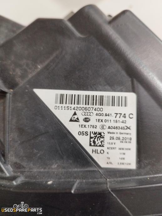 Desna prednja luč za Audi A6 C7 Avant (4G5, 4GD) iz leta 2011 do 2019. Delovni številka: 4G0941774C. Ta del je primeren za vozila z dizelskim motorjem 3.0 TDI quattro. Luč vključuje funkcije kot so osvetlitev ceste, svetlobni signali in dneva svetloba. Primeren za vozila, ki potrebujejo zamenjavo poškodovane ali stare luči.