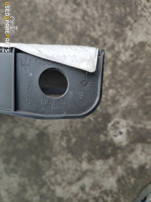 Notranja obloga za Maserati Levante 3.0 V6 D je del notranjosti vozila, ki zagotavlja udobnost in estetsko izgled vozila. Ta del je posebej zasnovan za to vozilo in je del standardne opreme. Notranja obloga vključuje različne elemente, kot so obloga vrata, obloga stropa in drugi notranji deli, ki so izdelani iz visokokakovostnih materialov. Del je označen s številko 670043363 in je primeren za vozila Maserati Levante 3.0 V6 D iz leta 2017 in kasneje.Letnik: 2017